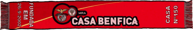 Cachecol da Casa do Benfica em Mira, casa nº 150, fundada a 26 de Setembro de 2002.